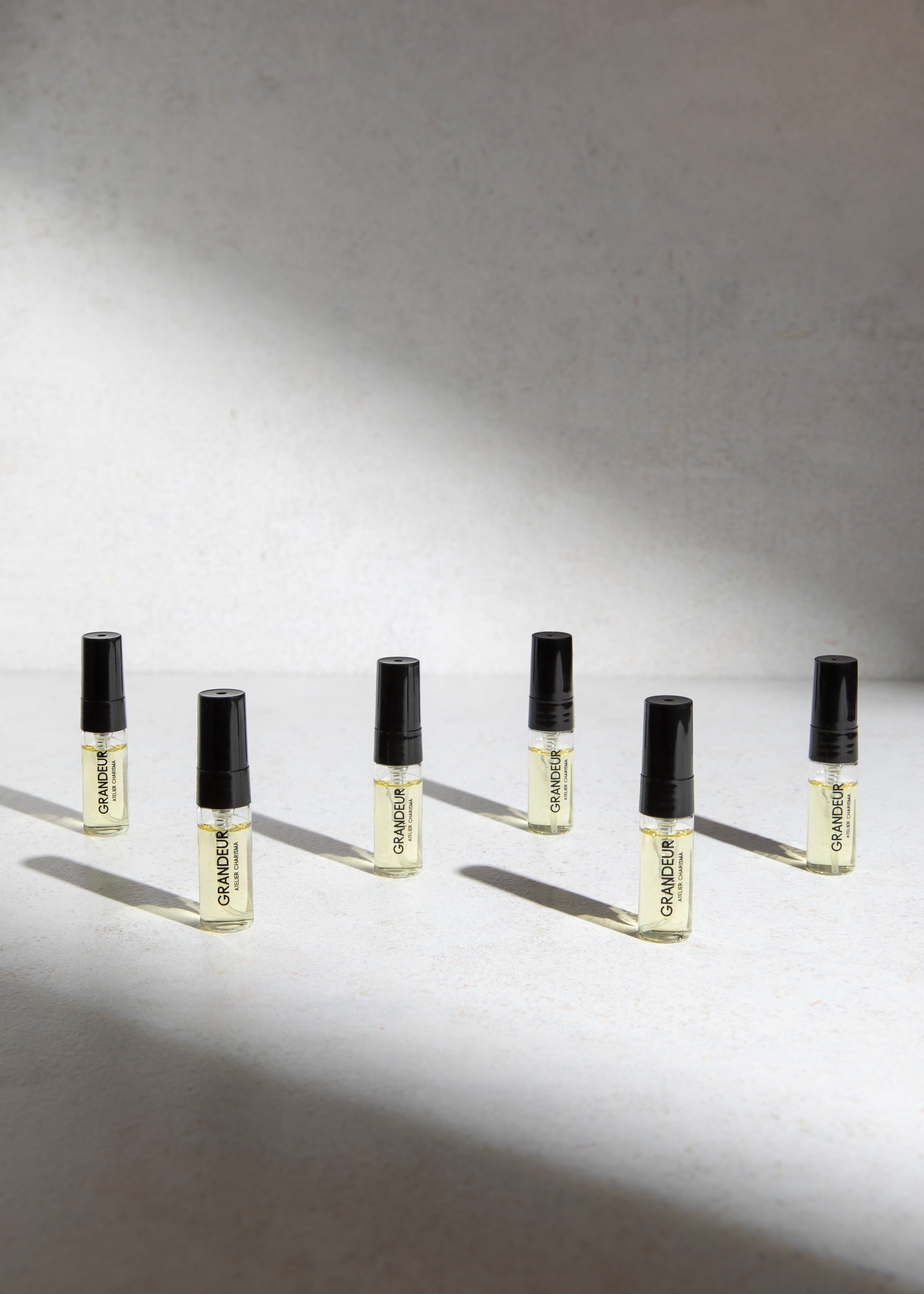 The air now shimmers with Cardamom, fresh and bright, laying gently on the skin like a secret. Musk lingers, tender and unassuming, yet charged with an energy that keeps them bound together. The Grandeur of love has become intimate, and quiet, but still sparkling.
