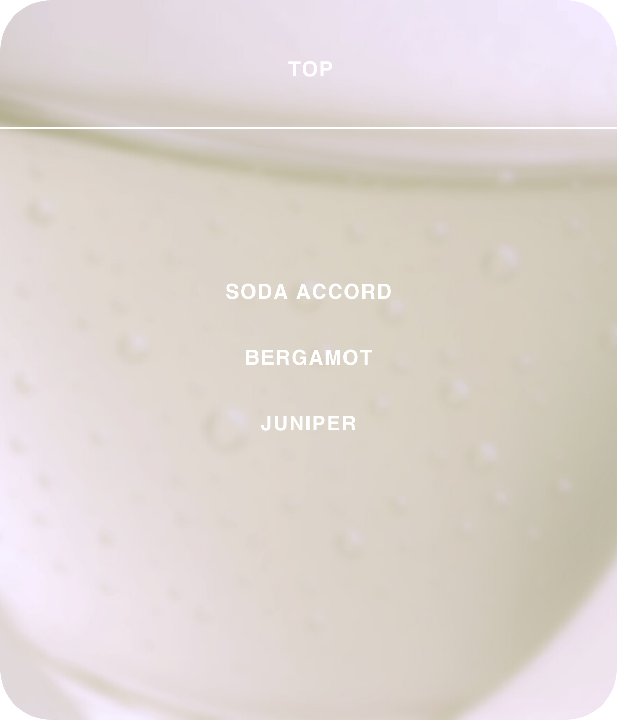 .... captures fizzy clarity and understated warmth. Sparkling with cardamom and a twist of spiced tonic, the scent opens bright and clean, yet quietly bold. It softens into sheer musks and mineral woods, leaving a trail that feels both skin-like and gently charged.